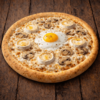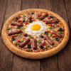 Tomate, fromage, champignons, jambon, chorizo, oeuf
