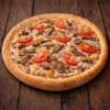 Tomate, fromage, oignons, poivrons, olives, merguez, oeuf