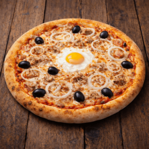 Tomate, fromage, champignons, jambon, chorizo, oeuf