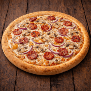 Crème fraîches, fromage, chorizo, champignons, oignons