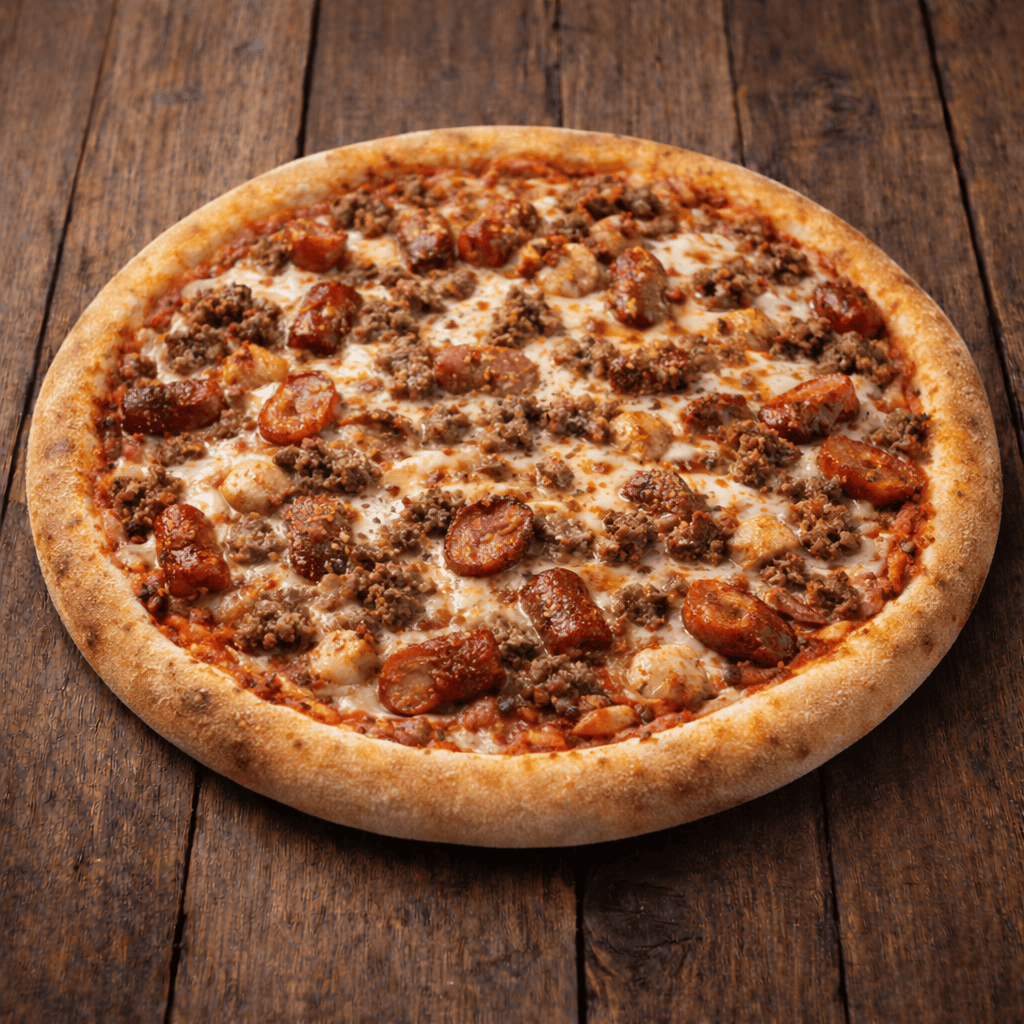 Tomate, fromage, viande hachée, merguez, poulet