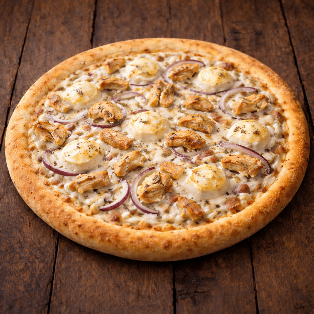 Crème fraîches, fromage, oignons, mozzarella, poulet